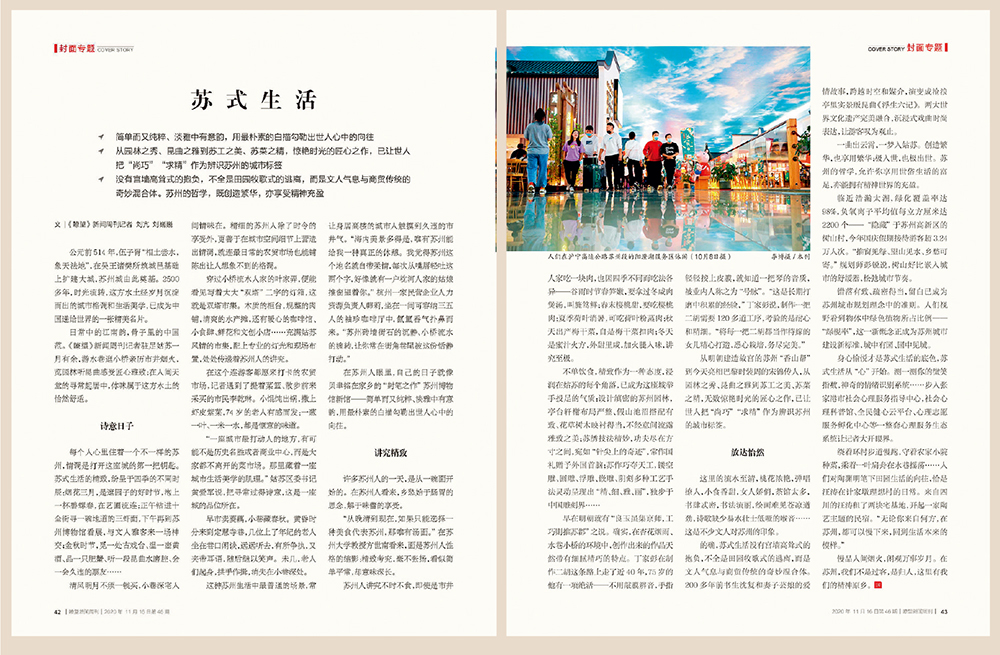 文化是城市之魂。在《城以文兴》(作者刘亢、蒋芳)中,我们发现苏州正努力找回“江南文化”核心地位,将文化作为城市发展的内生动力,梳理历史钩沉文脉,用文化展现城市个性,涵养城市气质,引领城市变革。新时代“姑苏繁华图”开始呈现出最江南的气韵。