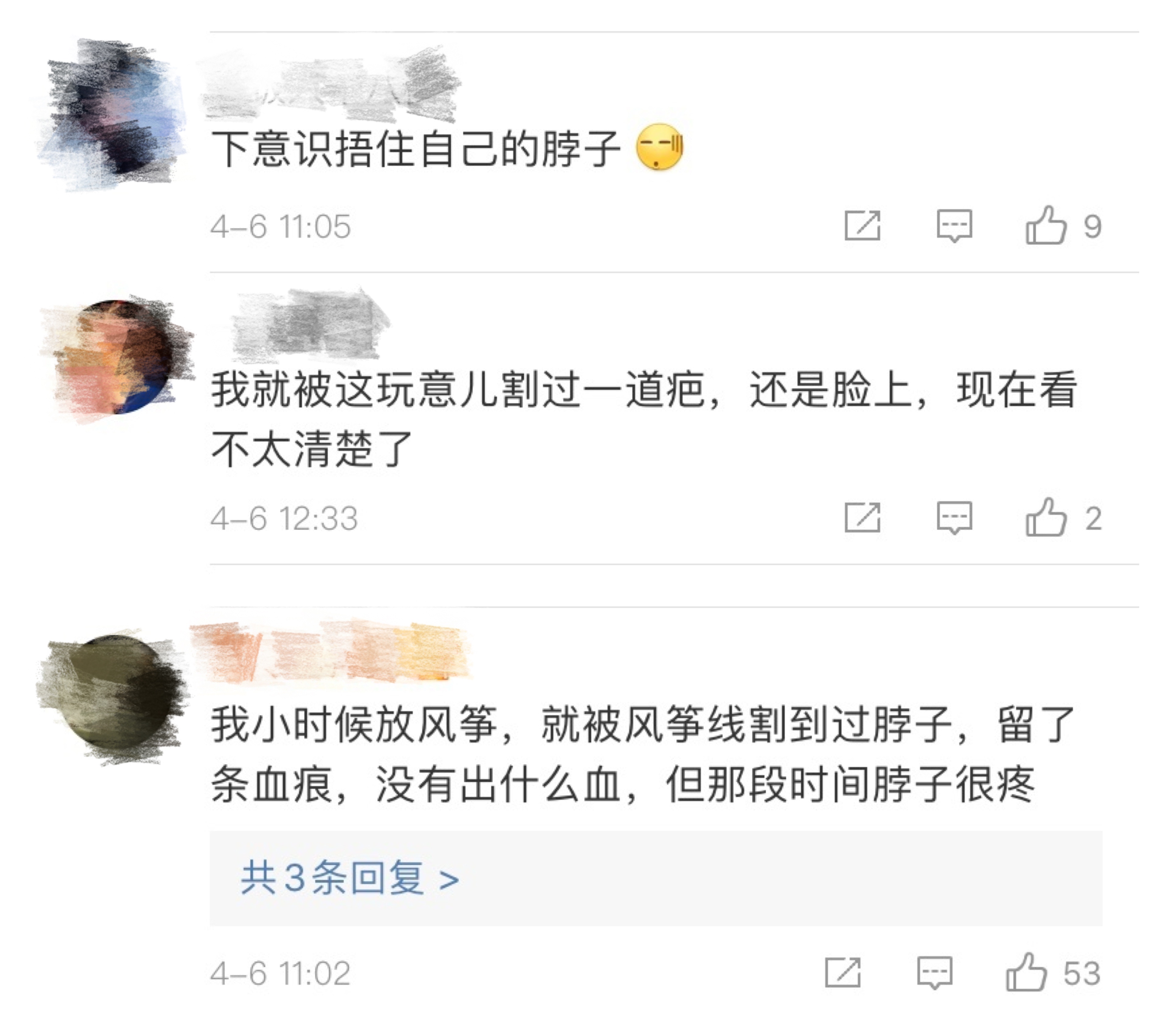 自己就曾被风筝线割过一道疤