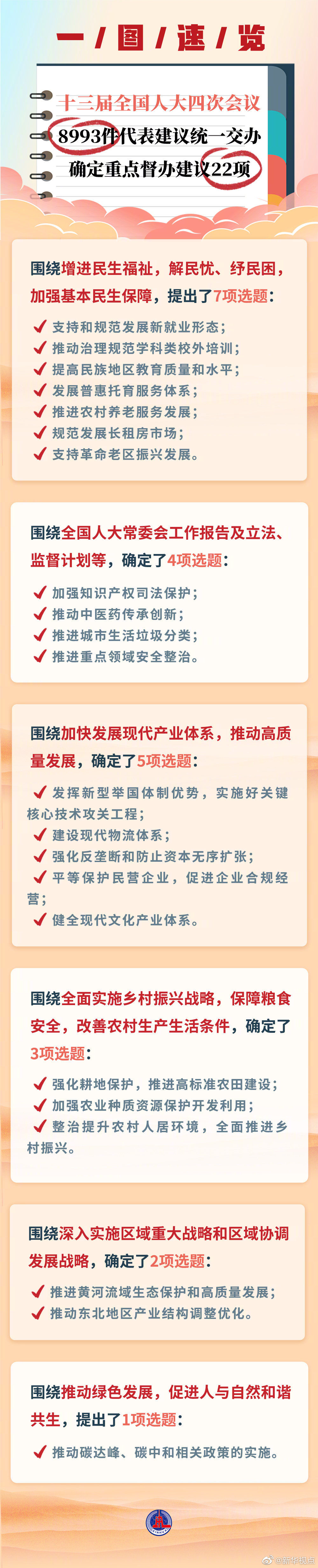 记者6日从在京召开的十三届全国人大四次会议代表建议交办会上获悉,在认真分析代表建议并广泛征求意见的基础上,全国人大常委会办公厅确定了22项重点督办建议,涉及代表建议300多件,交由国家发展改革委等17家承办单位牵头办理,由全国人大财经委等7个专门委员会负责督办。这些汇集基层智慧和声音的重点督办建议,你最关心哪一项?戳长图速览↓(记者:陈菲 制图:徐壮)