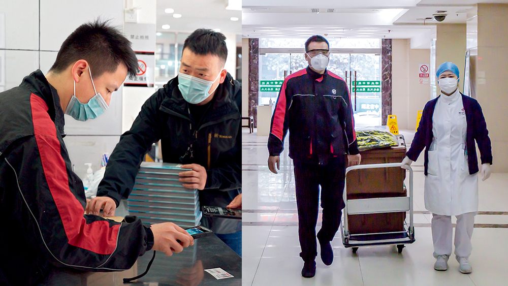 疫情期间,以一己之力撬动巨量资源、为众多医护解决难题的快递小哥汪勇,被公司连升三级,目前,汪勇正在组更大的“局” 左图:熊琦摄/本刊
