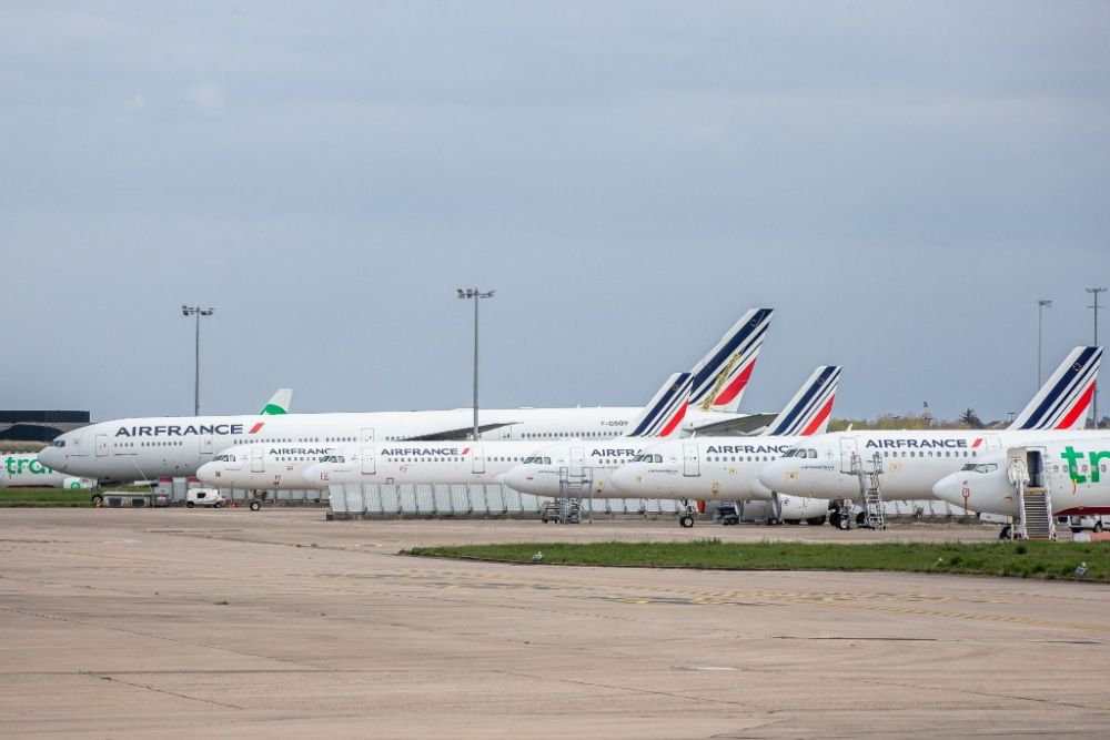 这是2020年4月3日在受新冠疫情影响而关闭的法国巴黎奥利机场拍摄的法航-荷航集团的飞机。(新华社发,奥雷利安·莫里萨尔摄)