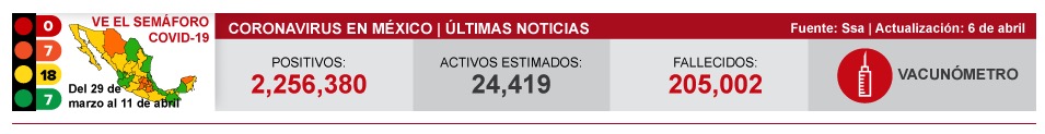 当地时间4月6日,墨西哥卫生部宣布,截至4月6日19时,墨西哥全国新冠肺炎确诊病例累计达2256380例,较前一日新增4675例;新增死亡病例603例,累计死亡205002例。(总台记者 盛嘉迪 吕兴林)