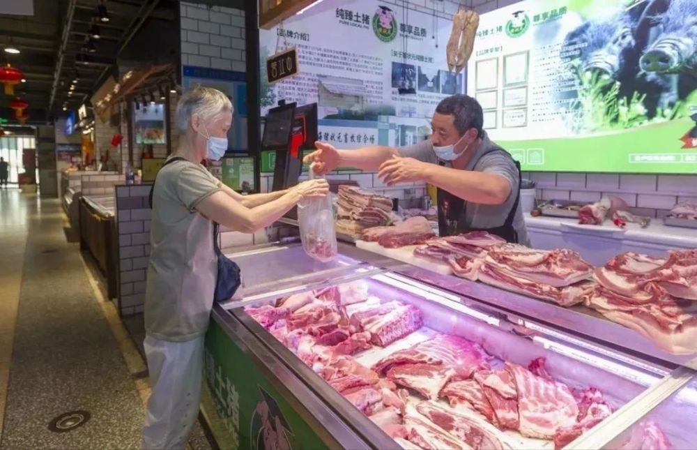 ▲2020年6月30日,市民在上海万有集市中心菜场陆家嘴店购买猪肉。图/新华社发