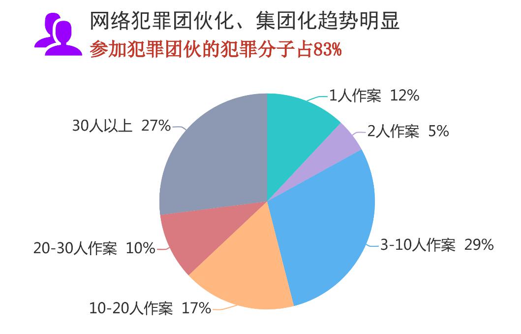 ——集团化、跨境化特征凸显。网络犯罪逐渐告别“单兵作战”模式,依附于网络黑灰产业,更多以团伙或集团形式作案。
