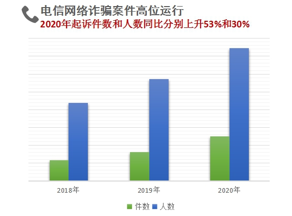最高人民检察院发布统计数据显示,2020年,全国检察机关起诉涉嫌网络犯罪(含利用网络和利用电信实施的犯罪及其上下游关联犯罪)14.2万人,同比上升47.9%。