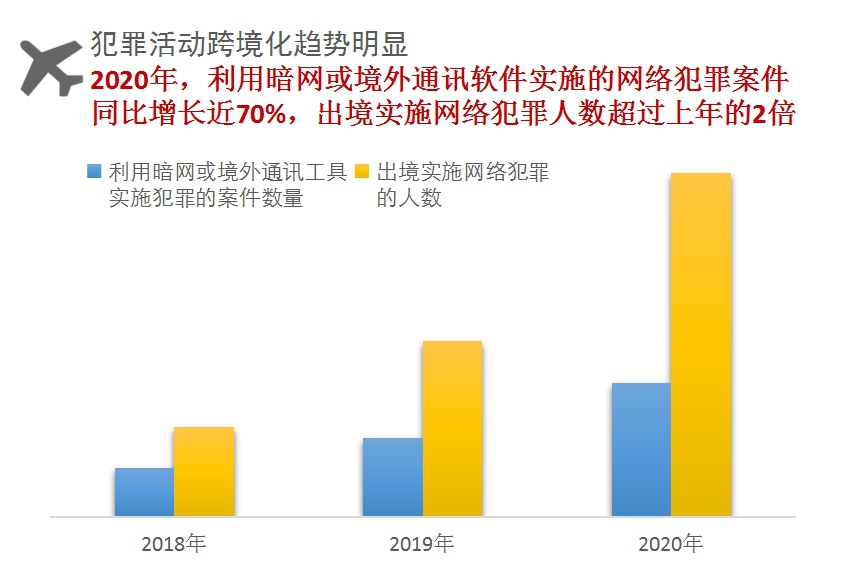 ——网络诈骗、网络赌博成为网络犯罪主要类型。当前,传统犯罪加速向网络空间蔓延,特别是利用网络实施的诈骗和赌博犯罪持续高发,2020年已占网络犯罪总数的64.4%。