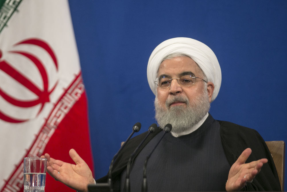 2019年10月14日,伊朗总统鲁哈尼在德黑兰出席新闻发布会。(新华社发,艾哈迈德摄)