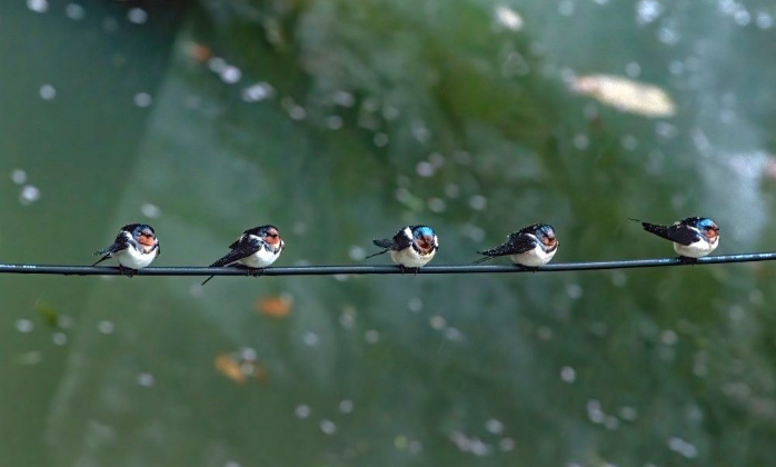 燕子在贵州省毕节市黔西县水西河湿地公园歇息。