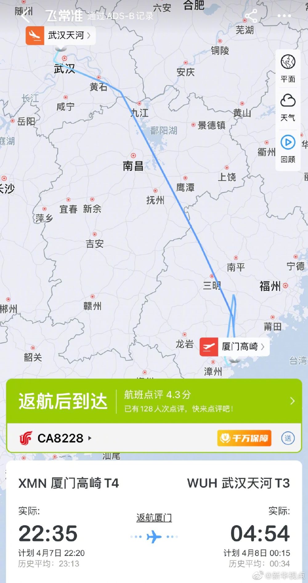 【厦门飞武汉航班因乘客谎称有炸弹返航】记者从厦门市有关部门获悉,国航CA8228航班于4月7日晚10时35分起飞后,有乘客在机舱中声称“机上有炸弹”,随后该航班返航厦门高崎国际机场。经警方现场检查,未在飞机上发现爆炸物,出警民警将该乘客带回公安机关做进一步调查。随后,航班重新起飞。第三方航班信息软件显示,该航班已于8日4时54分抵达武汉天河国际机场。(记者颜之宏、付敏)