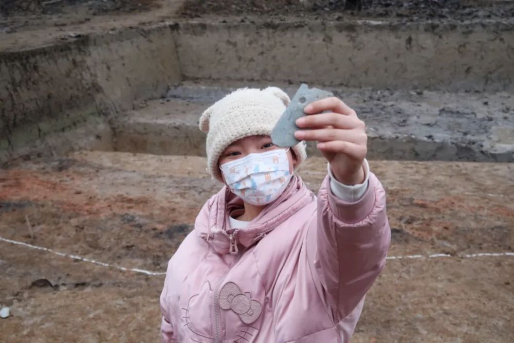 一周后,“梦守护”的志愿者们陪着牛牛来到杭州周边的跳头遗址。遗址项目负责人林森带领她顺着工人们临时搭建的台阶走进考古探方。