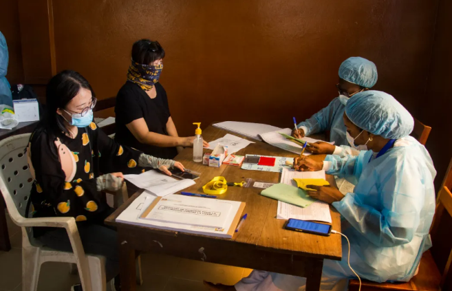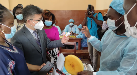 当地时间4月6日,在中国驻贝宁大使馆的积极推动下,中国公民在贝宁首都克托努指定疫苗接种点,顺利完成中国研制新冠疫苗第一剂的接种。