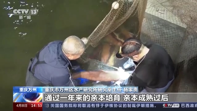 重庆市万州区水产研究所研究室主任 杨家贵:现在他们进行的是胭脂鱼的人工催产,通过一年来的亲本培育,亲本成熟过后就从室外培育室捕捞送到室内产卵池进行人工催产。
