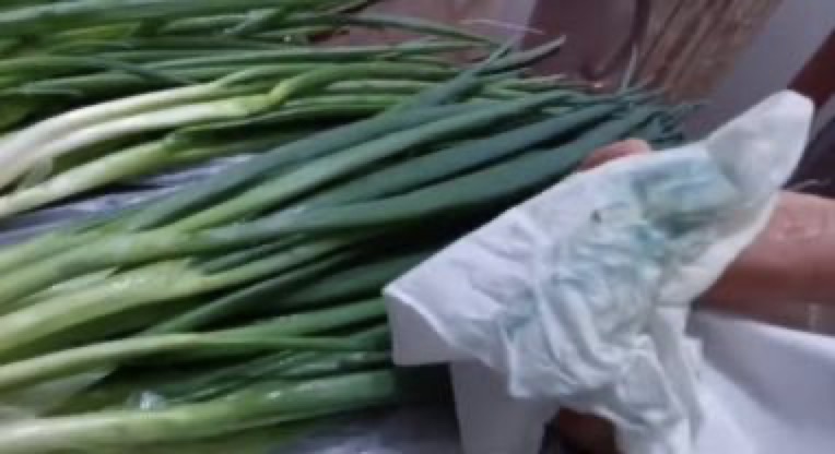 近日,江西赣州,市民王女士称自己购买的香葱居然可以擦出蓝色。经检测,这份清洗过的香葱中铜含量高于香葱自身营养成分,表明可能使用了波尔多液。