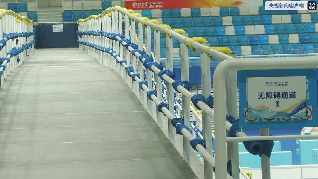 国家游泳中心运行团队残奥整合协调经理郝英杰介绍说,这个通道完全符合IPC和北京冬奥组委最高标准。搭这个架子也是充分考虑到轮椅冰壶的特殊性,因为全部是轮椅运动员,如果搭电梯它的运力跟上下交叉错峰的时间还是有一些困难的。这样的话就可以解决很多的问题,包括在运送物料的时候这个通道也是可以运用的。