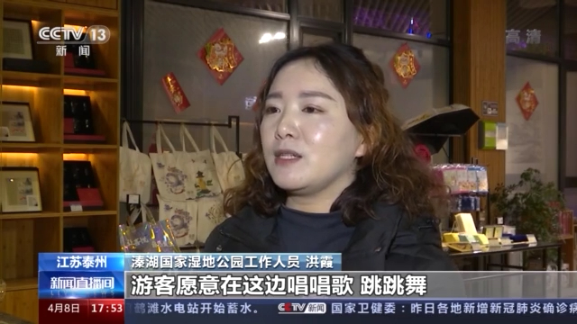 溱湖国家湿地公园工作人员 洪霞:现在有了这个夜游活动,游客愿意在这边唱唱歌跳跳舞,丰富了我们水乡的田园夜生活。