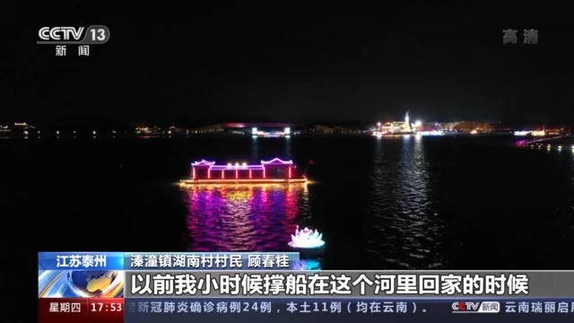 溱潼镇湖南村村民 顾春桂:以前我小时候撑船在这个河里回家的时候,水上都是黑洞洞的。现在呢,一湖的灯,让我有一种幸福的感觉。