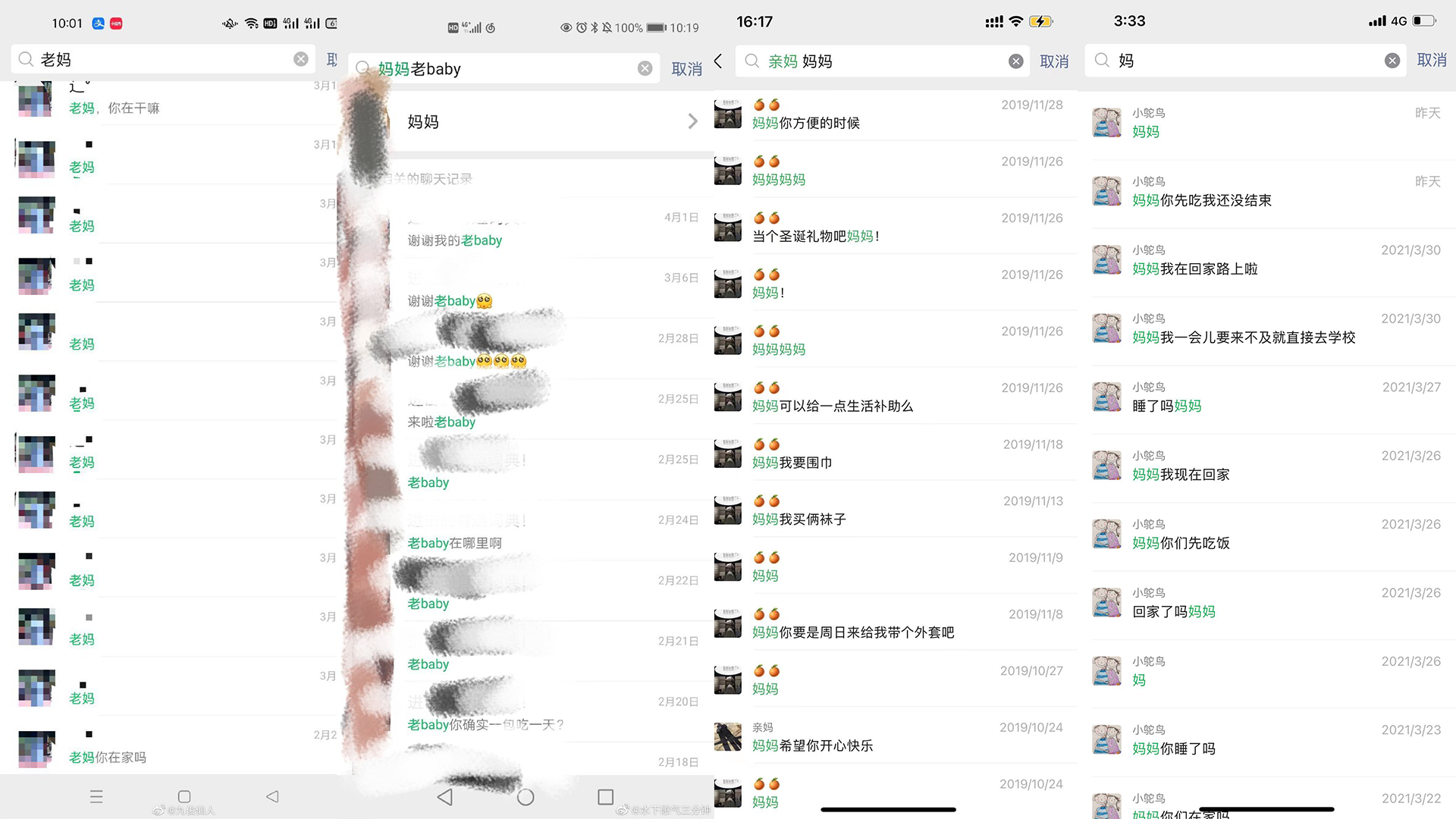 @马卓 :我的聊天记录没有妈妈这个词。与之一起减少的,还有沟通的次数,从每天都会“呼叫”妈妈,变成了一个月也喊不到几次。