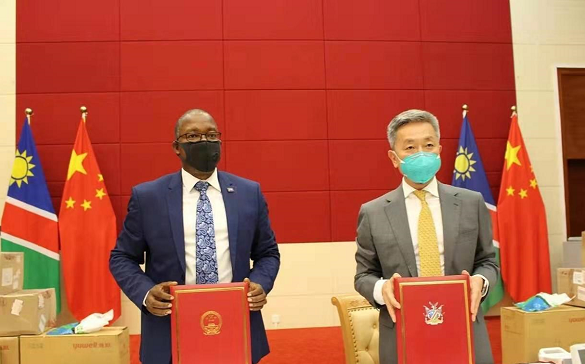 当地时间4月8日,中国驻纳米比亚大使馆举行向纳卫生与社会服务部捐赠抗疫物资交接仪式。