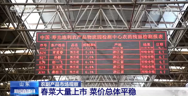 在国内最大的蔬菜集散中心山东寿光,记者了解到,入春以来,天气转暖,北方春菜上市量有所增加。这几天,进入市场的蔬菜品种和货量明显增多,经销商纪振男告诉记者,近期菜花的批发价格略有下降。