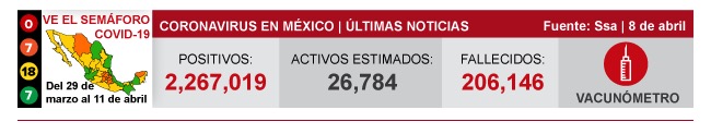 当地时间4月8日,墨西哥卫生部宣布,截止到4月8日晚7时,墨西哥累计新冠肺炎确诊病例达2267019例,较前一天新增5140例;新增死亡病例548例,累计死亡206146例。(总台记者 盛嘉迪 吕兴林)