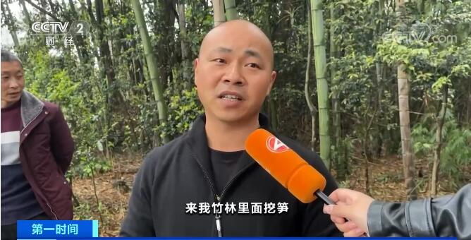 村民 张先生:每人都提了一口袋,有剥了壳的,有没剥壳的。我们就问他,你们这些笋是从哪里挖的?他说导游带他们来采挖体验基地,当时我很气,说真的,又没有人跟我说过什么挖笋体验或者是什么的,也没人跟我打过招呼,就直接带那么多人来我竹林里面挖笋。