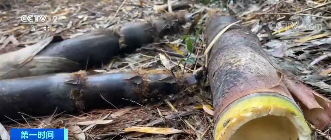 张先生家的竹林就在这条不长的乡村小道上,记者看到,此时地面上还遗留有不少被扔下的竹笋。而在竹林中,竹笋被采挖的痕迹随处可见,被扒掉的笋皮也满地都是。 那么为什么会出现视频中的“一万块钱一根竹笋”的声音,记者向张先生进行了求证。