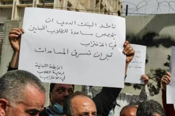 △黎巴嫩央行前家长抗议画面