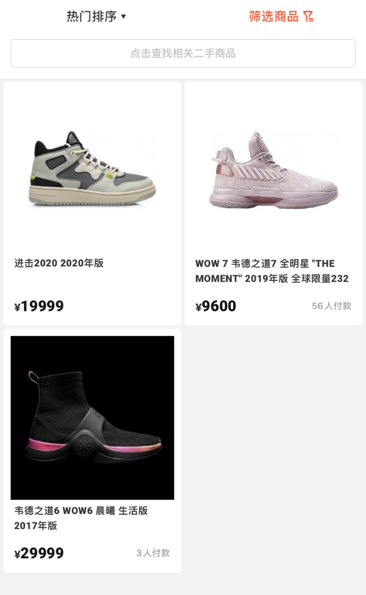 但记者发现,不少溢价严重的国产球鞋在其他平台上仍在销售。在某球鞋交易App上,一款发售价为899元的国产球鞋,当前售价为29999元;一款发售价为439元的国产球鞋,当前售价为19999元。