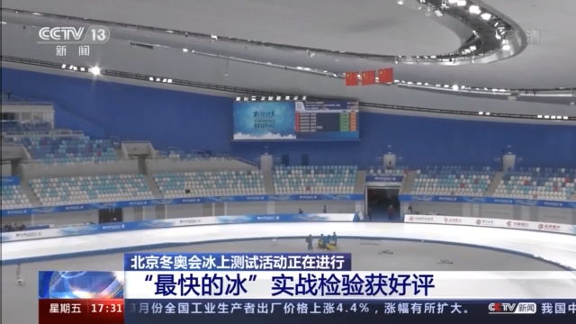 总台记者 何畅:最快的冰,也就是现场我们看到的未来将用于短道速滑比赛的这块冰面,这座场馆用这种新的技术和高的标准一直在调试和打造这块冰,希望在北京冬奥会的时候,速滑运动员可以在这块冰面上创造出最快的世界纪录。在过去的这几天,这块冰上也迎来了十几场实战检验。我采访的很多参加测试活动的运动员,他们对这块冰都纷纷进行了点赞,同时很多人也在这块冰上创造了个人最好成绩。