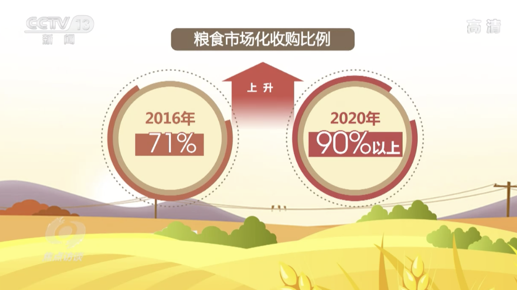 随着我国经济的发展,近年来,粮食购销活动也愈加活跃,2019年全国具有粮食收购资格的经营者中,非国有市场主体占比接近90%;粮食市场化收购比例从2016年的71%上升至2020年的90%以上。粮食市场主体更加多元,市场化收购比例也不断增加。