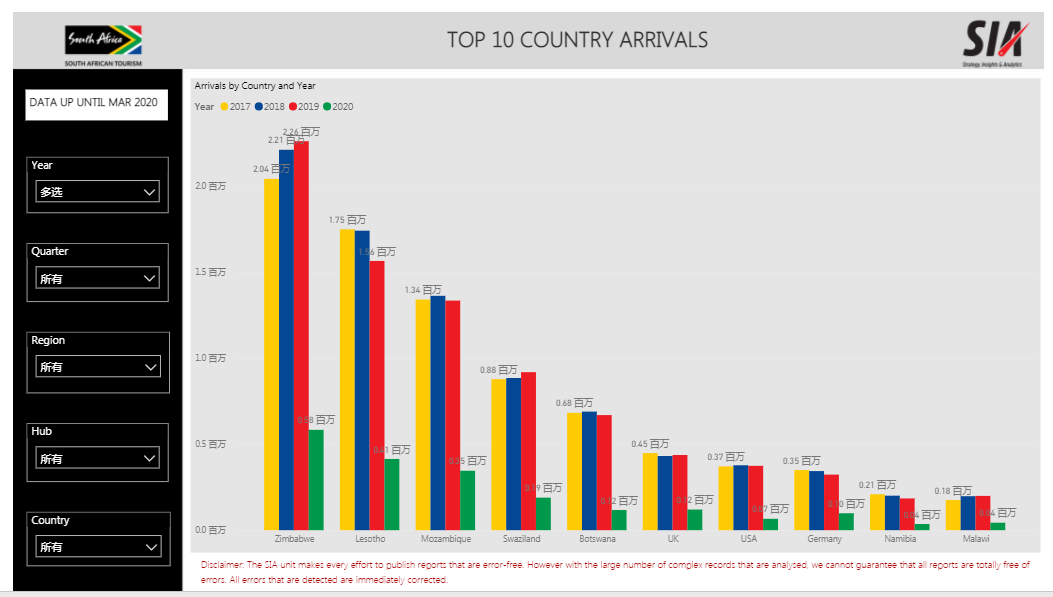 2020年南非国际游客比往年减少70%以上,主要游客来自非洲其它国家。2021年开始该国国内旅游市场已经恢复50%,但是由于国内游客普遍采用汽车旅行的方式,所以该国国内航空旅客数目仅为2019年的40%,而国际航空旅客数目更少,仅为2019年的20%。