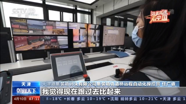 天津港集装箱码头有限公司集装箱轨道桥远程自动化操控员 任广睿:我觉得现在跟过去比起来,就是一个跨越时空的一个表现。