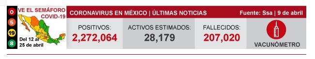 当地时间4月9日,墨西哥卫生部宣布,截止到4月9日晚7时,墨西哥全国累计新冠肺炎确诊病例2272064例,较前一天新增了5045例;累计死亡病例207020例,较前一天新增874例。(总台记者 盛嘉迪 吕兴林)