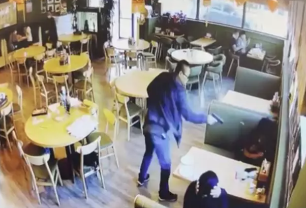 景亦新是被害华人女子的丈夫。当地时间5日傍晚6时左右,他将手枪藏于纸袋中,尾随妻子和一名男子进入一家华人烧烤餐厅。在两名受害人聊天时,他掏出手枪对两人进行了“行刑式射杀”。杀人后他还在现场观察了20秒时间,确认两人死亡后才步行离开。