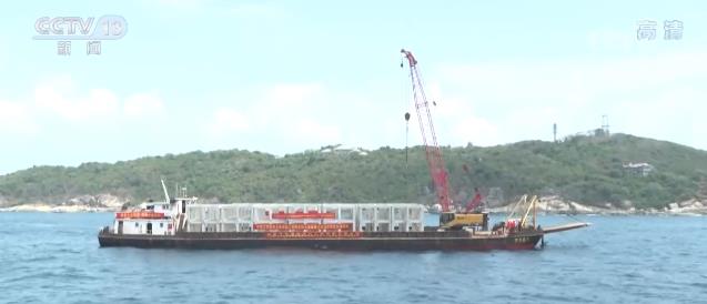 当天下午,起重机将一个个人工鱼礁陆续投放到海里。据介绍,此次投放的870个人工鱼礁体积共3万多立方米,将为海洋生物提供更多繁殖、生长发育、索饵等生息场所。