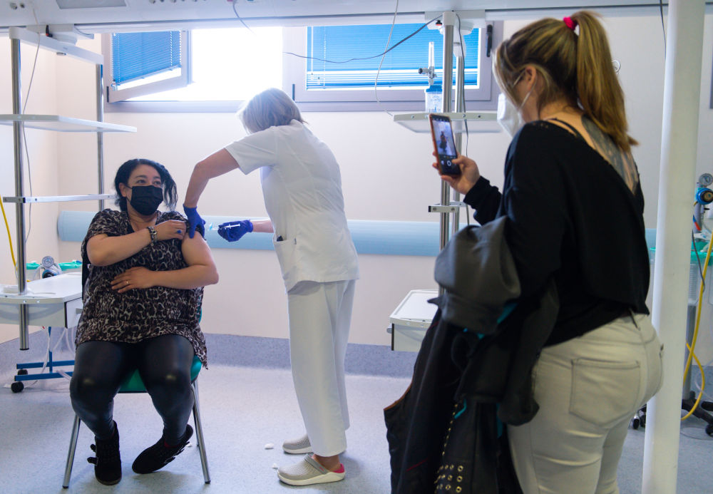 3月24日,一名女子在西班牙卡塞雷斯省科里亚市医院接种阿斯利康疫苗。(新华社发,古斯塔沃·巴连特摄)