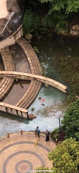 4月8日下午,记者来到成都市武侯区的朗基·天香小区。记者看到,小区水池中水已被抽干,水池边有几位业主还在讨论此事。