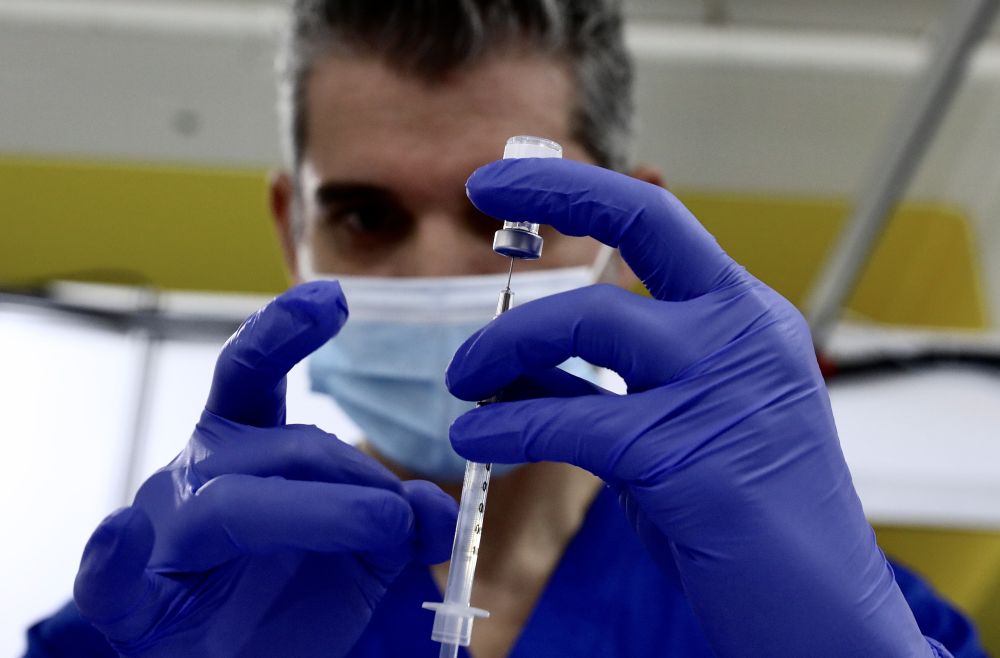 2月5日,一名医务人员在美国加州洛杉矶州立理工大学疫苗接种站为接种疫苗做准备。(新华社发)