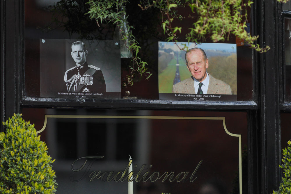 这是4月9日在英国温莎城堡附近的一家酒吧门外拍摄的菲利普亲王的照片。(新华社发,蒂姆·爱尔兰摄)