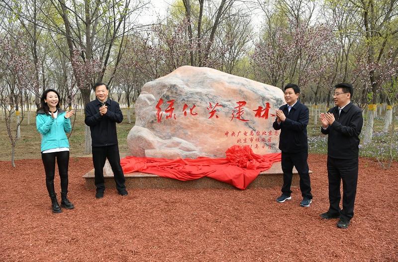 4月11日上午,中央广播电视总台北京总站与北京市顺义区举行绿化共建林揭幕活动。中宣部副部长、中央广播电视总台台长兼总编辑慎海雄,北京市委常委、宣传部长莫高义等共同为绿化共建林揭幕。