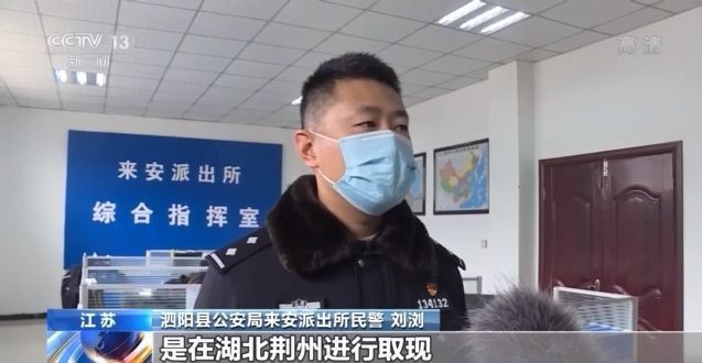 泗阳县公安局来安派出所民警 刘浏:发现其中有五万块钱,是在湖北荆州进行取现,后民警立刻赶赴湖北荆州,会同当地公安,调取了大量监控之后,发现是由两名年轻女子进行取现的。在确定了两名女子身份后,我们对该两名年轻女子进行了抓捕。