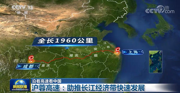央视网消息(新闻联播):沪蓉高速东起上海,西至成都,是我国高速公路网东西走向的主要干线之一。这条全长1960公里的高速路串起了长江经济带中的6个省市、三大城市群。自2014年底全线贯通以来,极大增强了我国东、中、西部资金、技术、人才的跨区域快速流通,助力形成资源互补、共同发展的大格局。