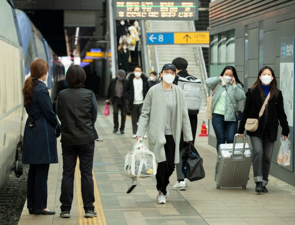 2月10日,戴口罩的乘客在韩国首尔站准备坐车回家过春节。(新华社发,李相浩摄)