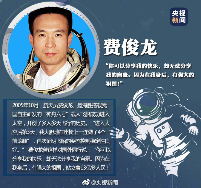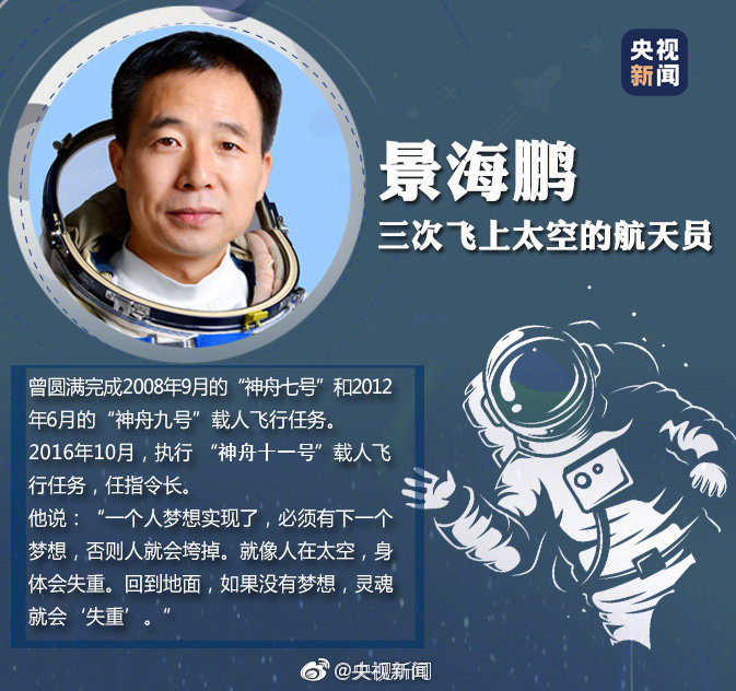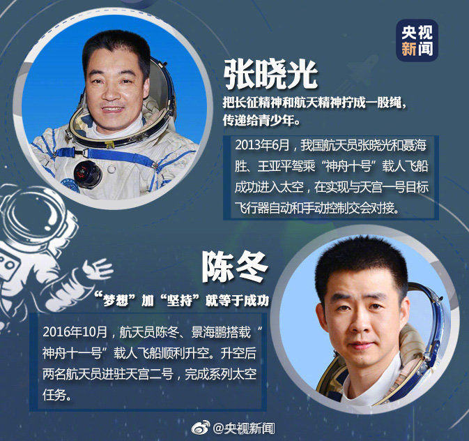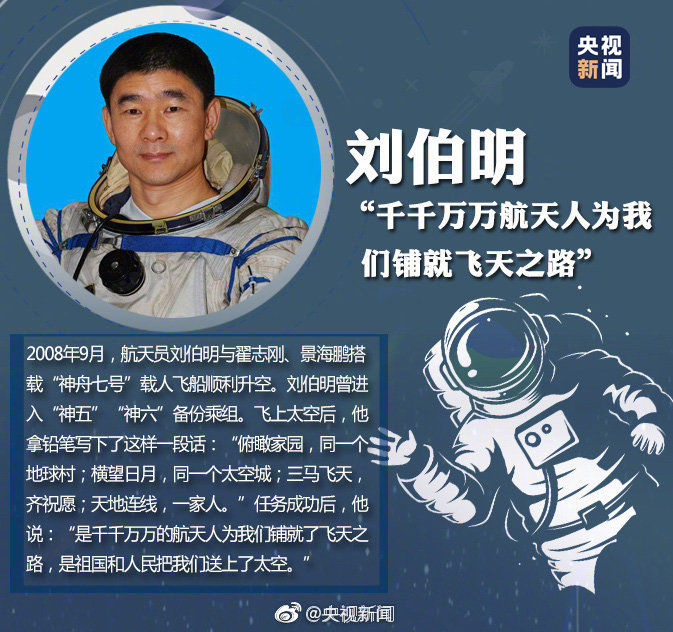 “我自愿从事载人航天事业。英勇无畏,无私奉献,不怕牺牲,甘愿为载人航天事业奋斗终生!”他们为祖国出征太空,在茫茫宇宙一次次留下中国人的身影。今明两年,我国载人航天工程预计实施11次发射任务,更多航天员将进入太空。致敬中国航天人!