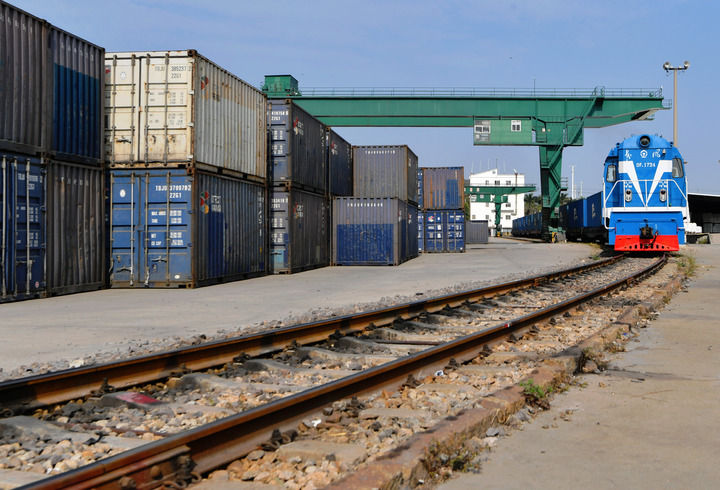 (图片说明)新华社照片,厦门(福建),4月10日在福建厦门海沧火车站拍摄的中欧(厦门)班列X8208次货物列车。