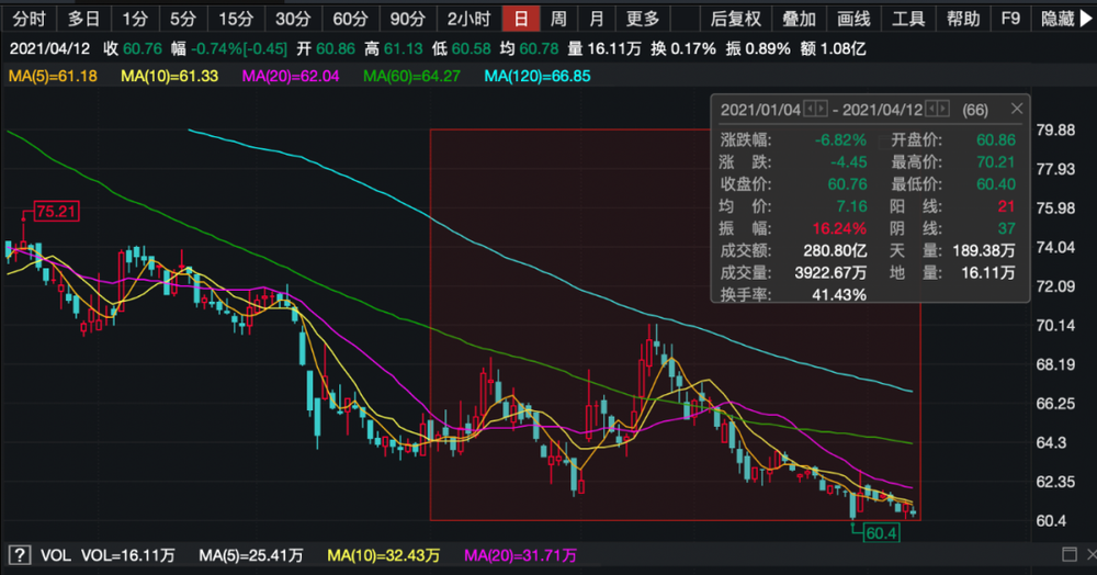 截至4月12日午间收盘,永辉超市收报6.69元/股,跌幅为0.74%。(完)