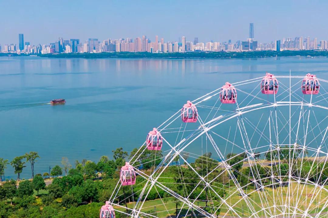 武汉东湖磨山景区“东湖之眼”摩天轮,吸引众多游客。熊琦 摄