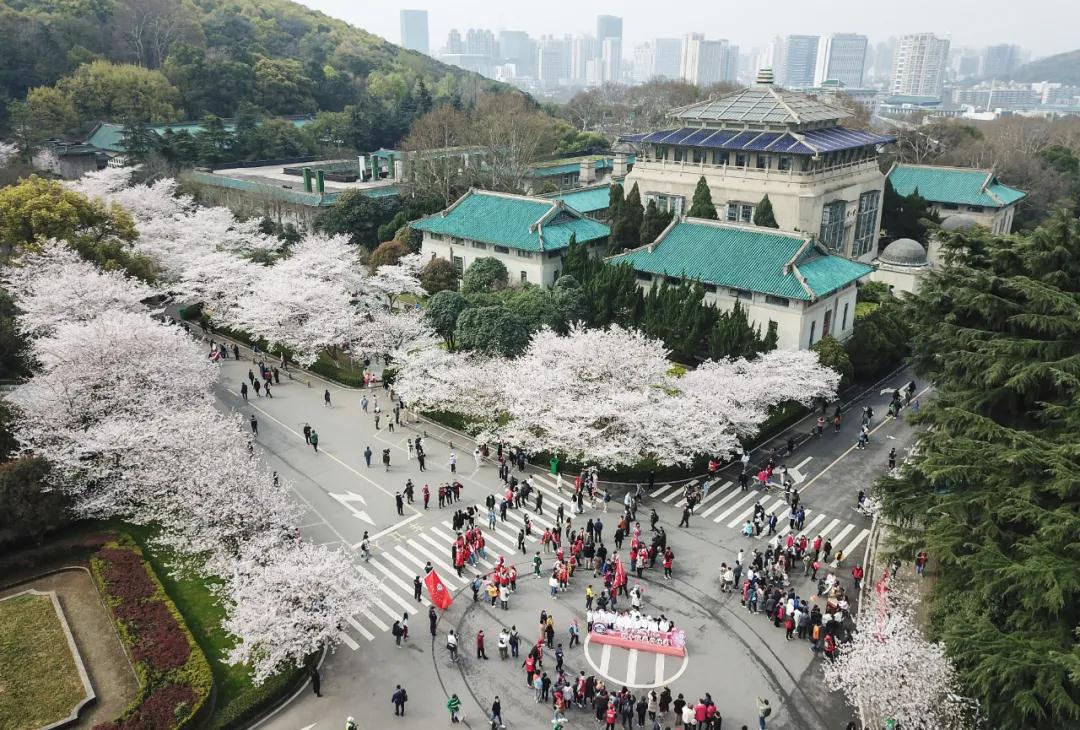 来自各地的援鄂医护人员在武汉大学校园赏樱花。程敏 摄