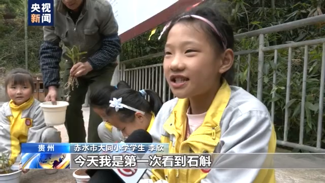赤水市大同小学学生 李欣:我是第一次看到石斛,它长在石头上。看着它觉得它很神奇。