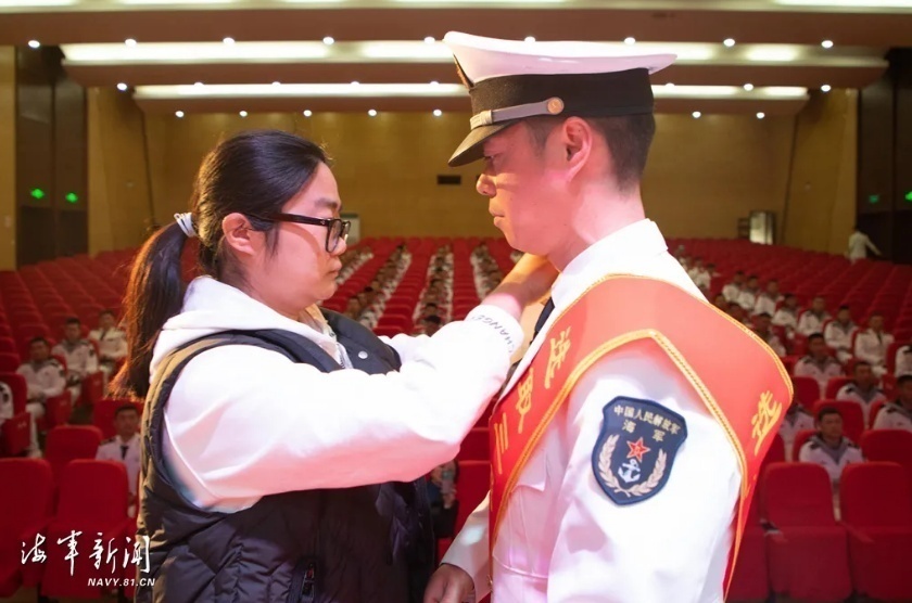 东部战区海军航空兵某场站举行高级士官晋升军衔仪式,陈战兵、陈新春分别晋升一级军士长、三级军士长军衔。军嫂、军娃及场站官兵共同见证荣耀时刻,军嫂亲手为“兵王”丈夫戴上新军衔。